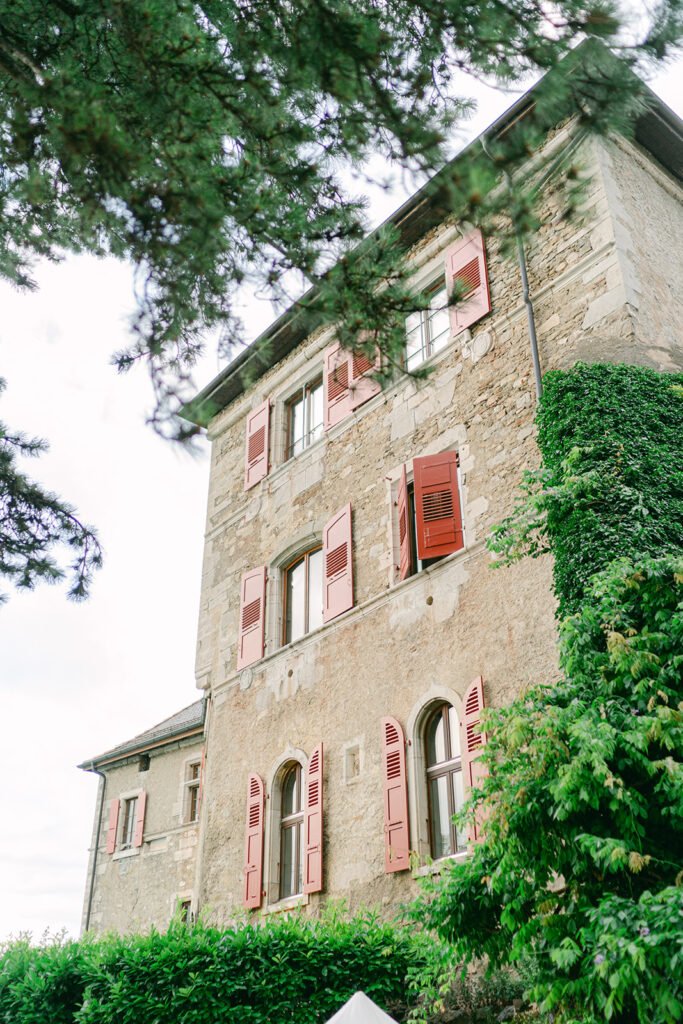 Le Château de Glérolles est l’un de mes lieux préférés. Situé directement au bord du lac Léman, on est immédiatement dépaysé dès qu’on y met les pieds. C’est un lieu particulièrement adapté aux mariages d’été, son grand atout étant le magnifique jardin au bord de l’eau ainsi que l’espace dédié à l’apéritif. Le château dispose également d’une salle intérieure pouvant accueillir jusqu’à 60 personnes. La plupart des couples choisissent d’y organiser la cérémonie, l’apéritif et le repas au même endroit.