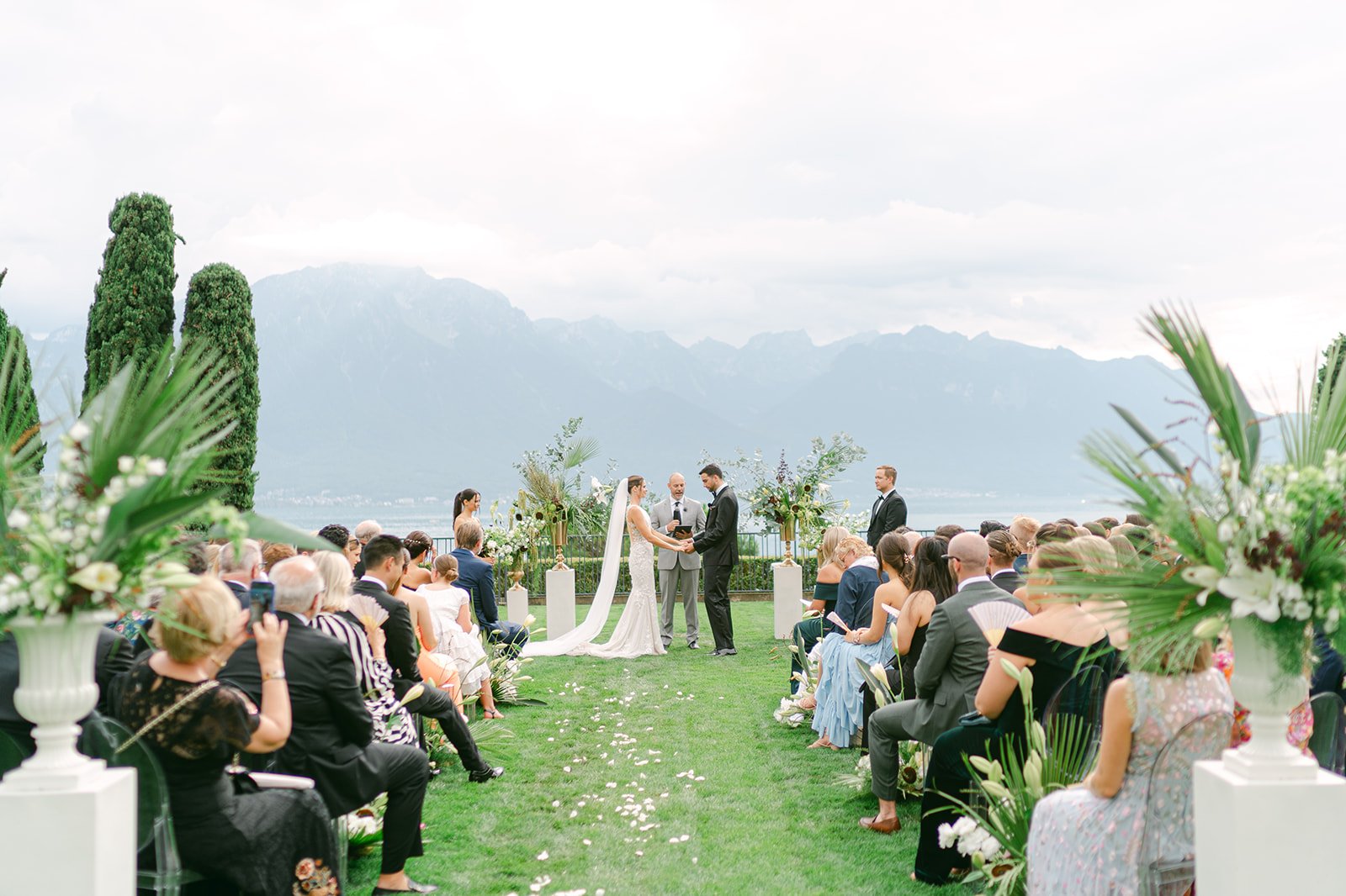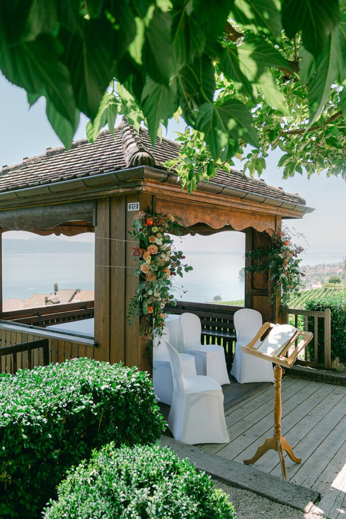 Le Fairmont Le Montreux Palace est un lieu iconique et élégant, idéal pour un mariage d’exception au bord du Lac Léman. Son architecture Belle Époque, ses salons raffinés et sa vue spectaculaire offrent un cadre à la fois grandiose et intemporel. La cérémonie se déroule habituellement dans le jardin de l’hôtel, offrant un cadre magnifique face au lac. Le souper peut ensuite avoir lieu sous la Coupole ou dans l’une des élégantes salles du Montreux Palace.