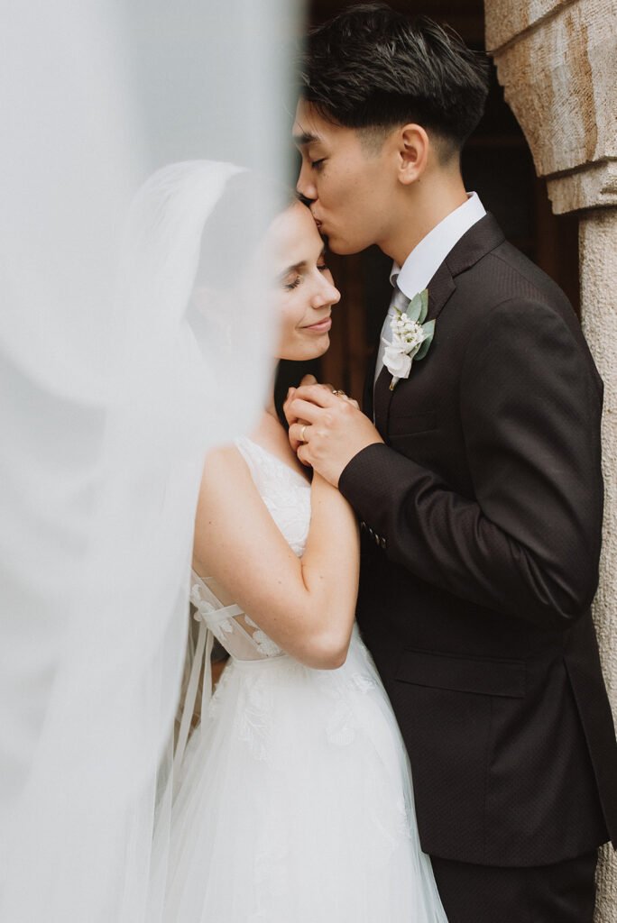 Conseil de photographe : Profitez du magnifique jardin pour les photos de couple. Si vous optez de faire un First Look, vous pouvez profitez du Chateau de Chillon pour votre séance!