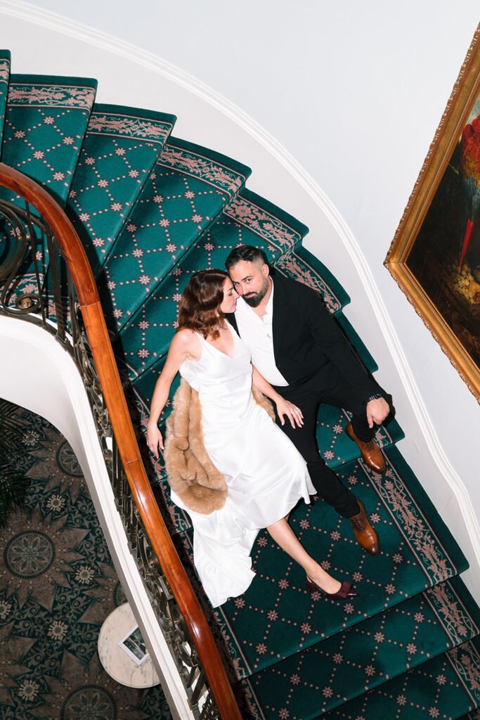 Conseil de photographe : Profitez de la belle vue pour vos photos de couple. Si le temps le permet, faites quelques clichés lors du coucher de soleil avec votre photographe.