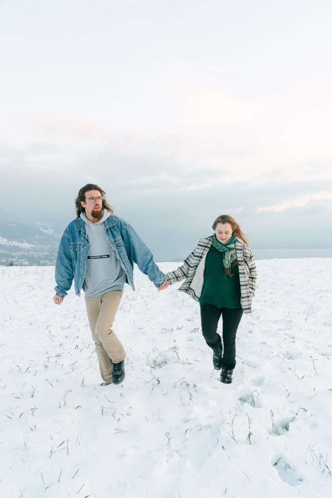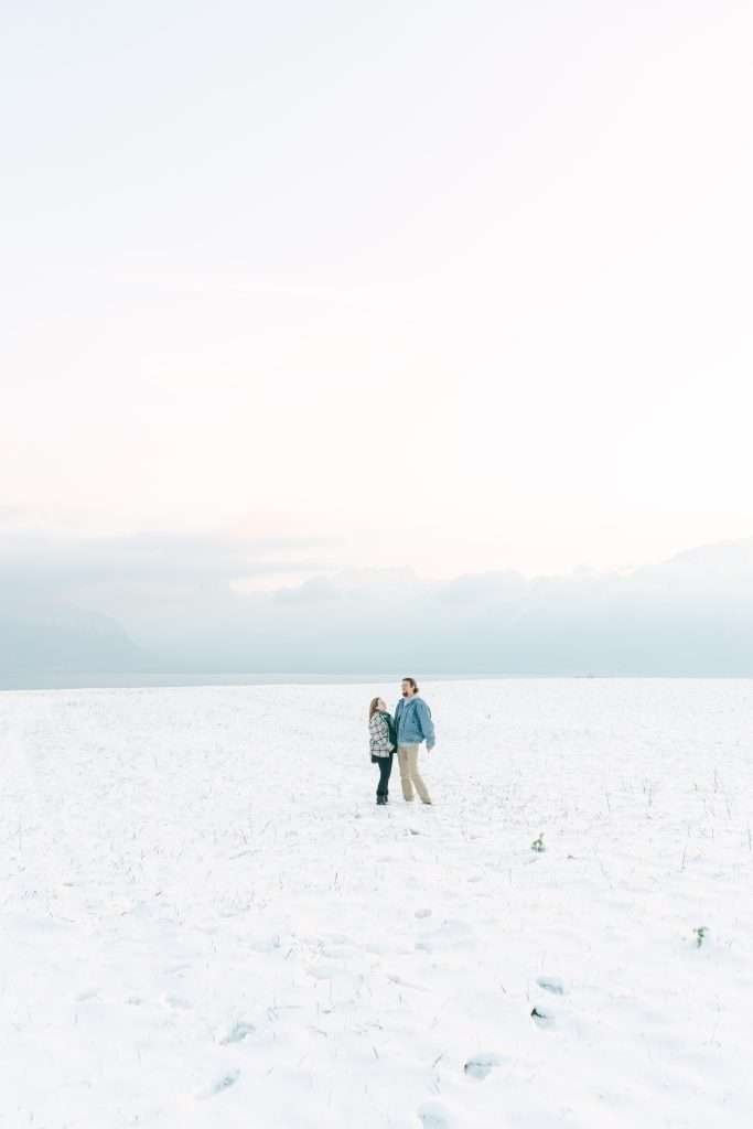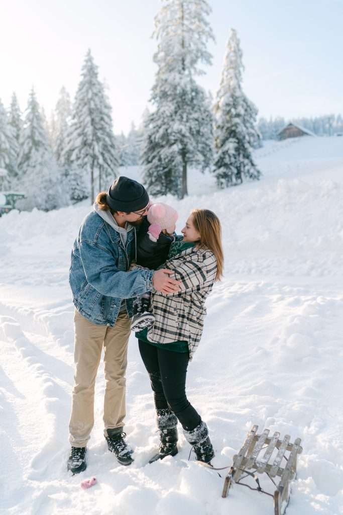 Alicia et Benjamin m’ont contacté pour prendre des photos de leur petite famille, qui a depuis grandi. Nos doigts étaient gelés, mais la lumière était splendide et le blanc de la neige donnait un effet féérique.