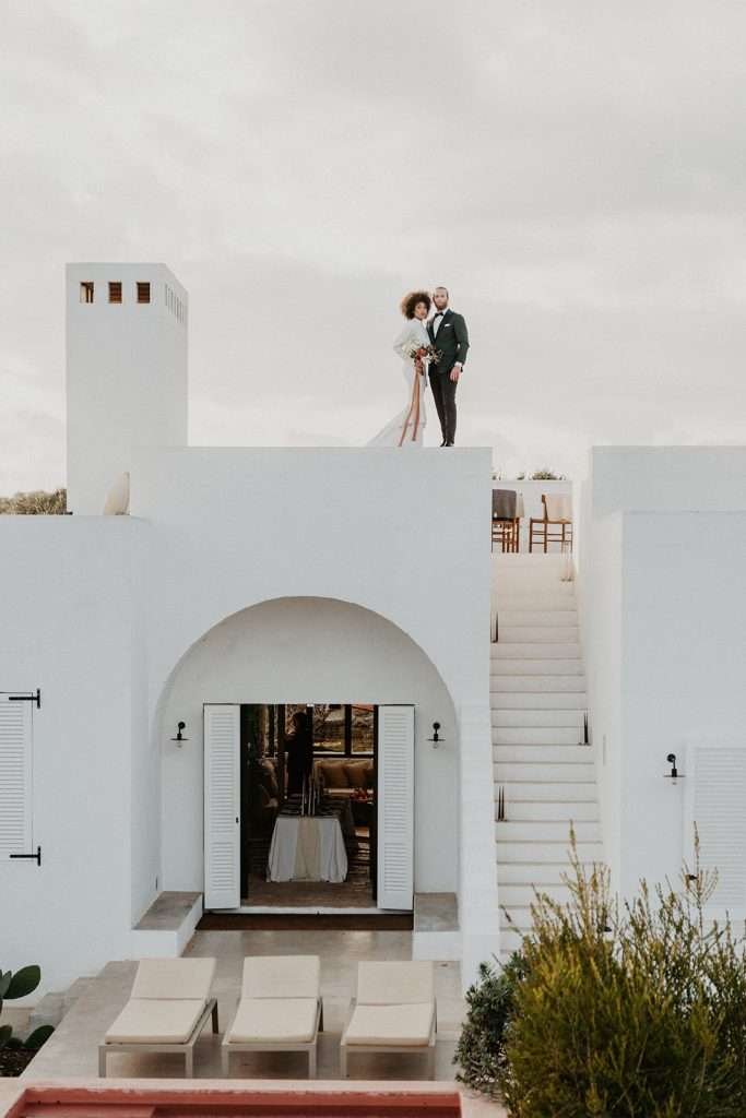 The wedding villa hides within an acre of land, surrounded by Puglia, Italy, native olive, and almond trees. The rooftop terrace has an incredible view of the surrounding groves and the beautiful sea. The house itself features a large living room with a dining space, 4 bedrooms, and 4 bathrooms. The main bedroom has its own veranda, with an external bathroom, a secluded outdoor shower, and a private garden. The other bedrooms include a double room with an ensuite bathroom and two bedrooms (one with a double bed and one with two single beds) that share a bathroom.